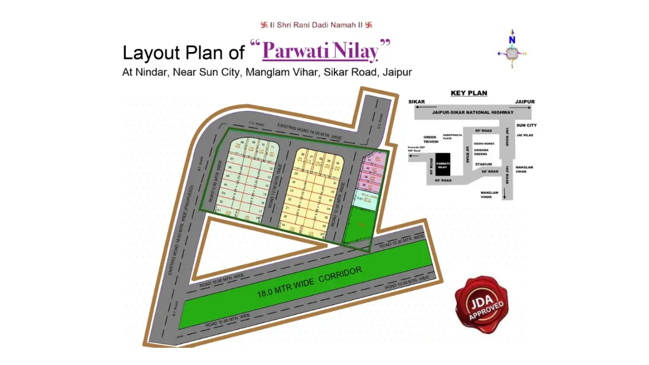 Strategically located in Nindar, near Sun City on Sikar Road, Jaipur, Parwati Nilay sits at the heart of one of the fastest-growing areas in the region. The locality is witnessing rapid development, with major government projects like the Nindar Awas Yojana nearby, and is surrounded by prominent high-rise residential/commercial complexes — making it an ideal destination for future-ready living.